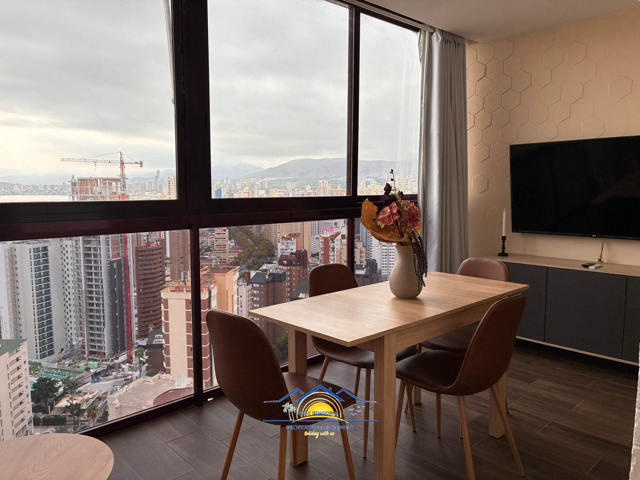 Eine der besonderen Besonderheiten der Wohnung ist der Panorama-Essbereich, der atemberaubende Ausblicke auf die Skyline von Benidorm und das endlose Meer bietet. Ob Sie einen Morgenkaffee genießen oder bei Sonnenuntergang ein Glas Wein trinken, die Aussicht wird Sie immer verzaubern.