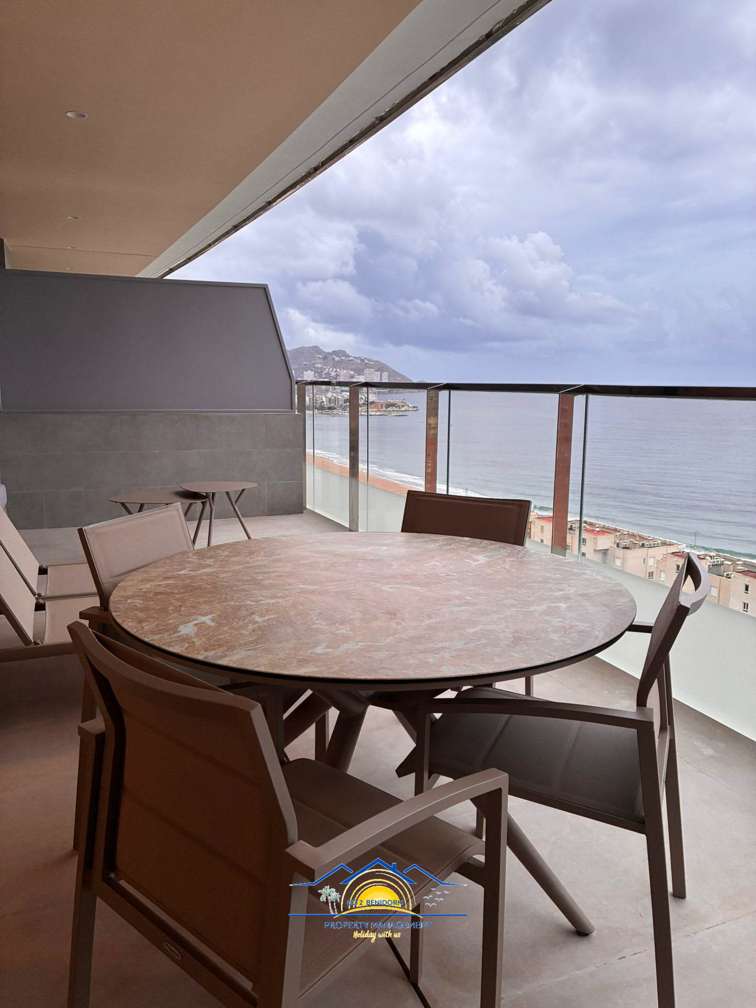 Los interiores espaciosos, luminosos y de diseño moderno y limpio te cautivarán desde el primer momento. A través de las ventanas de suelo a techo, podrás disfrutar de impresionantes vistas al mar y al icónico horizonte de Benidorm, como si cada mañana despertaras dentro de una postal.