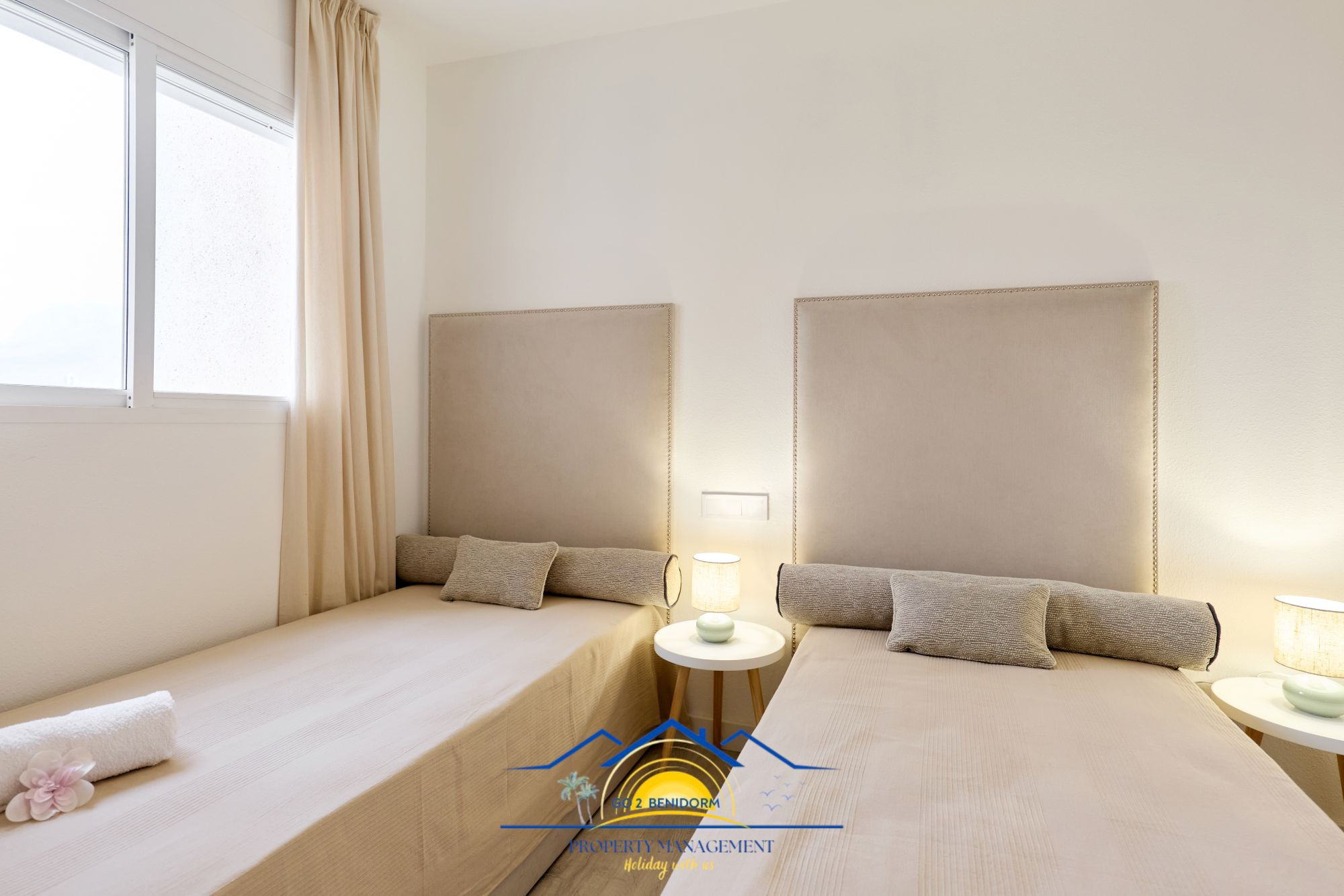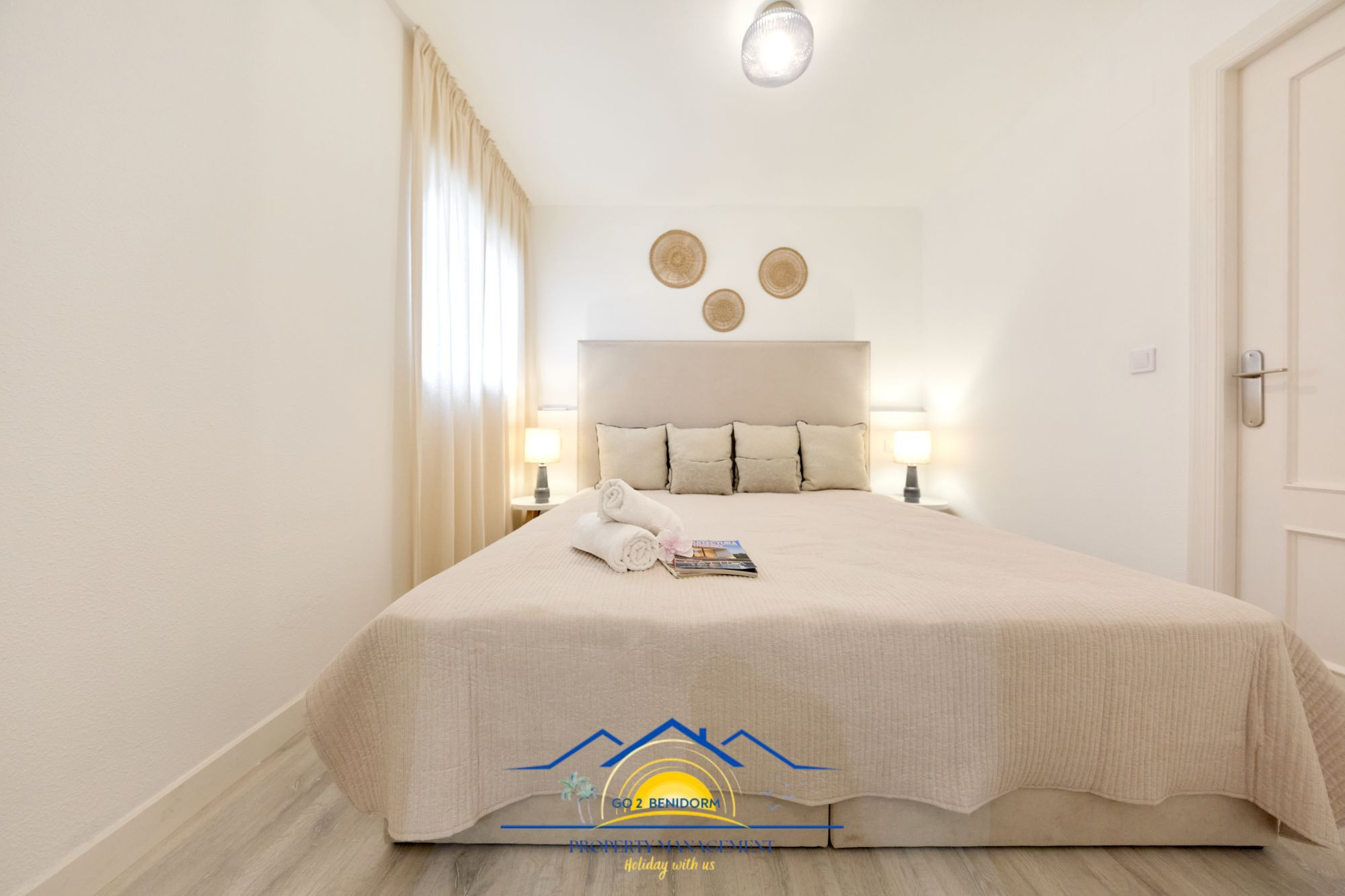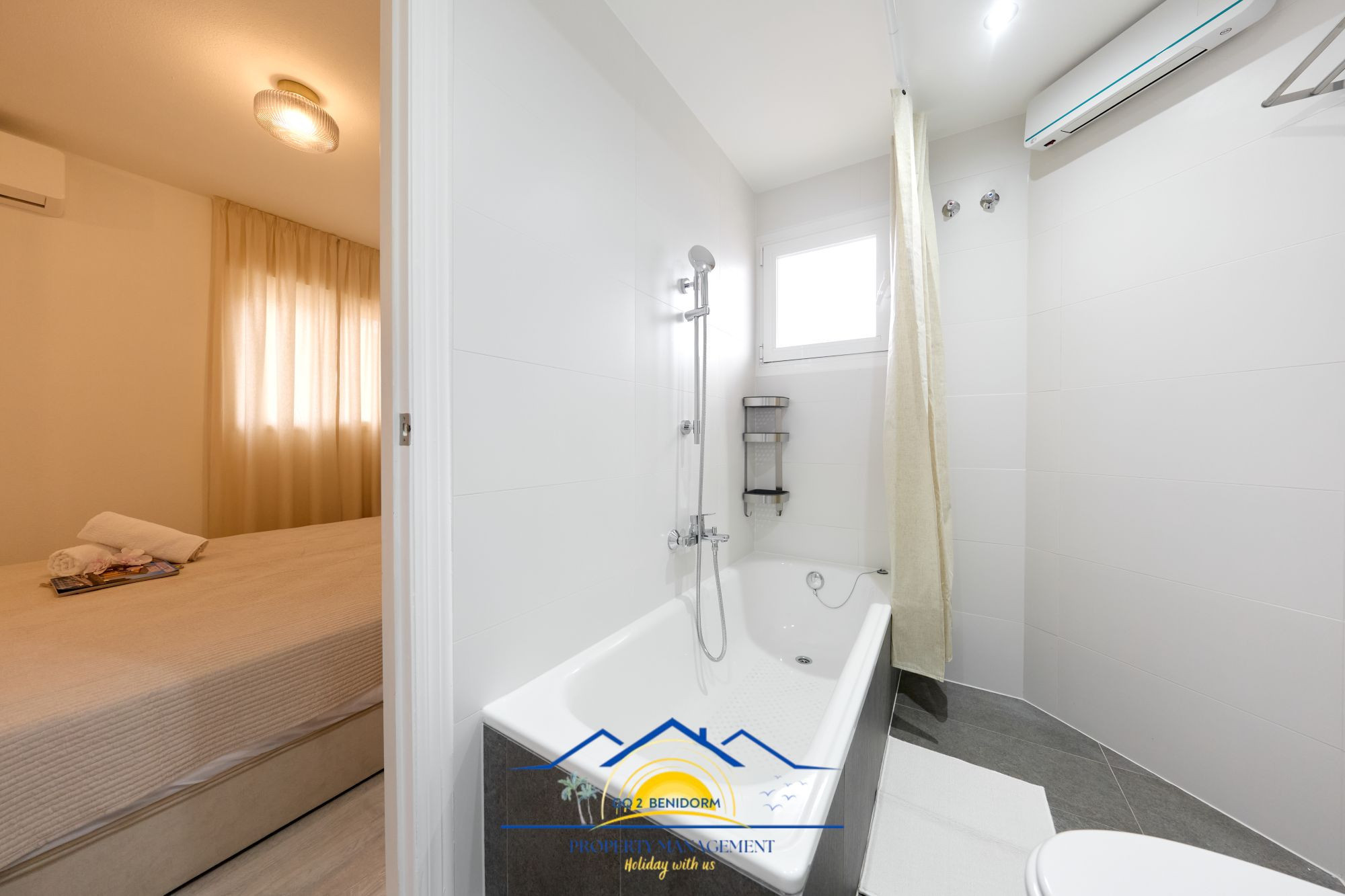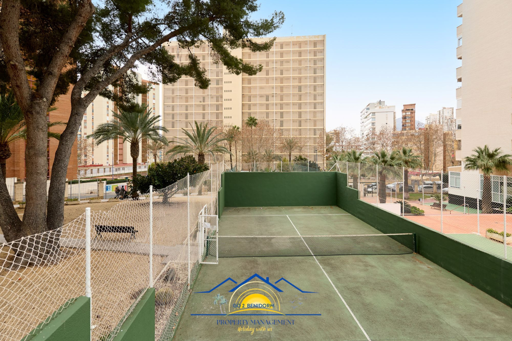 L'appartement à Benidorm dispose de 2 chambres et peut accueillir 6 personnes. L'appartement fait 50 m². La propriété est située à 110 m du supermarché, à 280 m de la plage de sable. Le logement est équipé des éléments suivants : ascenseur, machine à laver, internet (Wi-Fi), sèche-cheveux, court de tennis, climatisation, piscine commune, parking extérieur dans le même bâtiment, télévision. Dans la cuisine ouverte, un réfrigérateur, un micro-ondes et un four sont fournis.