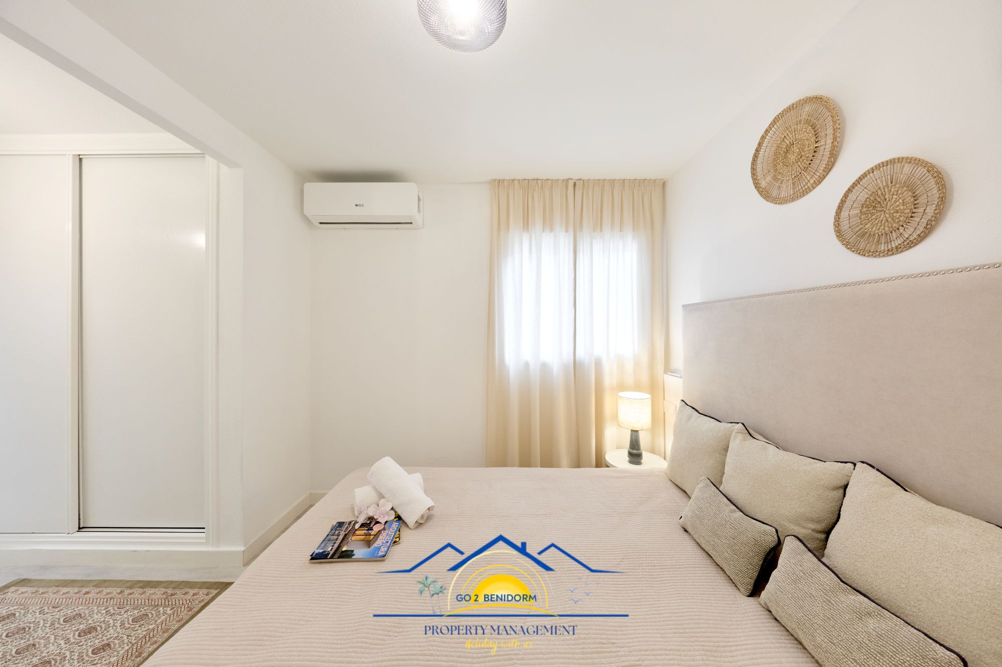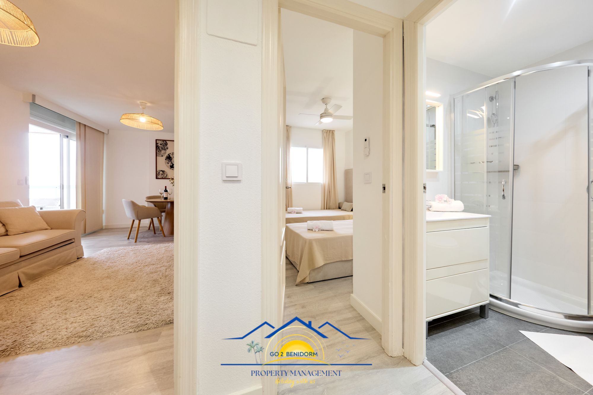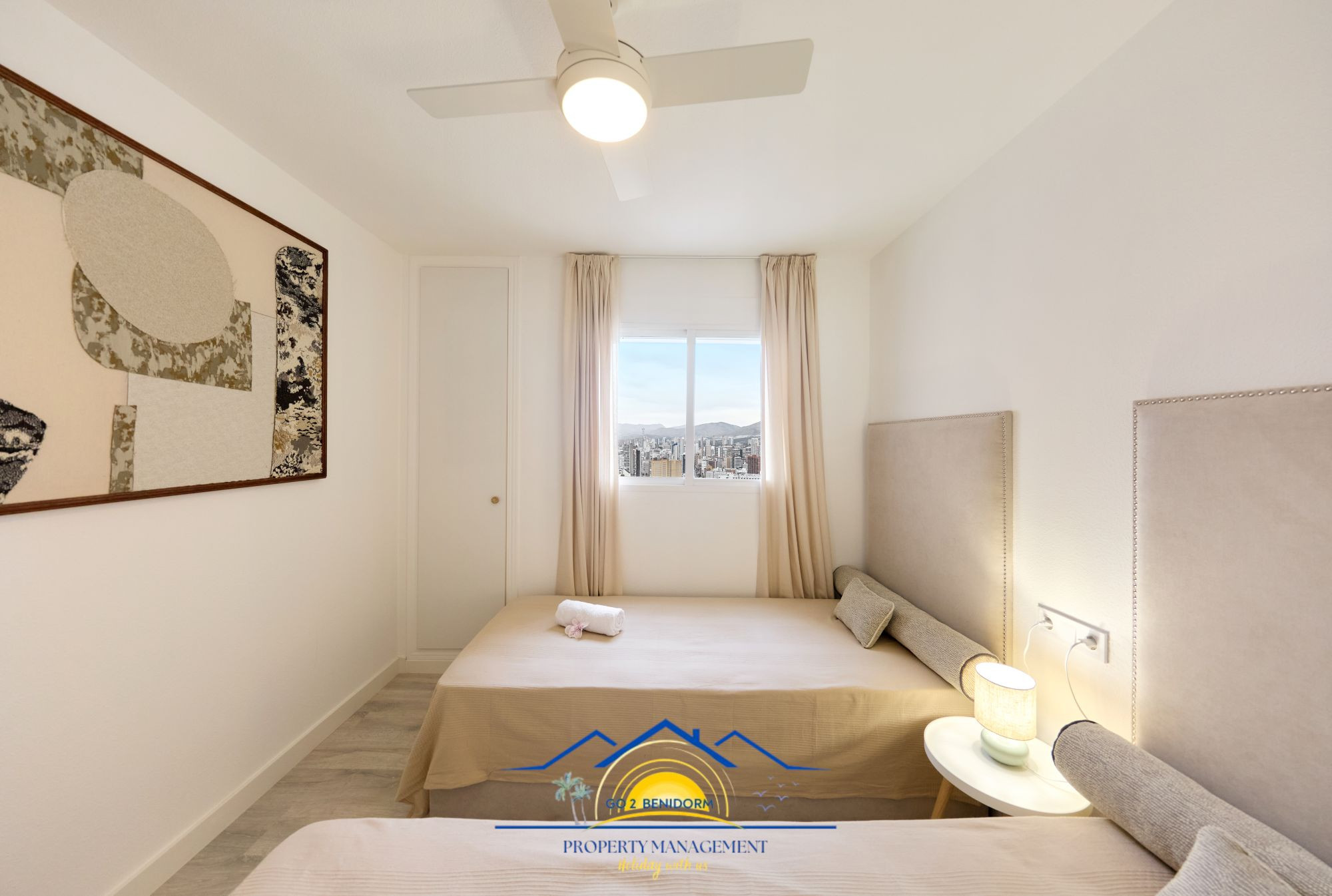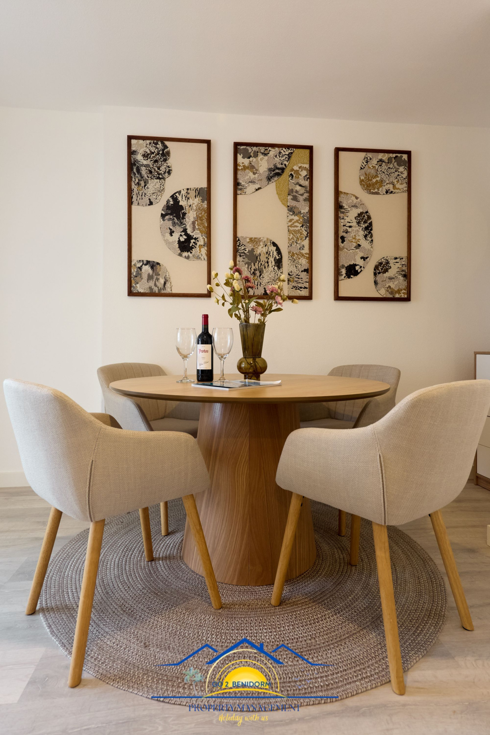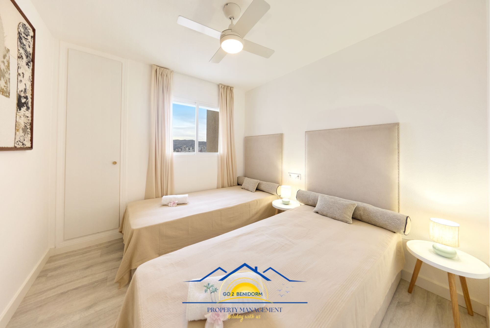 L'appartement à Benidorm dispose de 2 chambres et peut accueillir 6 personnes. L'appartement fait 50 m². La propriété est située à 110 m du supermarché, à 280 m de la plage de sable. Le logement est équipé des éléments suivants : ascenseur, machine à laver, internet (Wi-Fi), sèche-cheveux, court de tennis, climatisation, piscine commune, parking extérieur dans le même bâtiment, télévision. Dans la cuisine ouverte, un réfrigérateur, un micro-ondes et un four sont fournis.