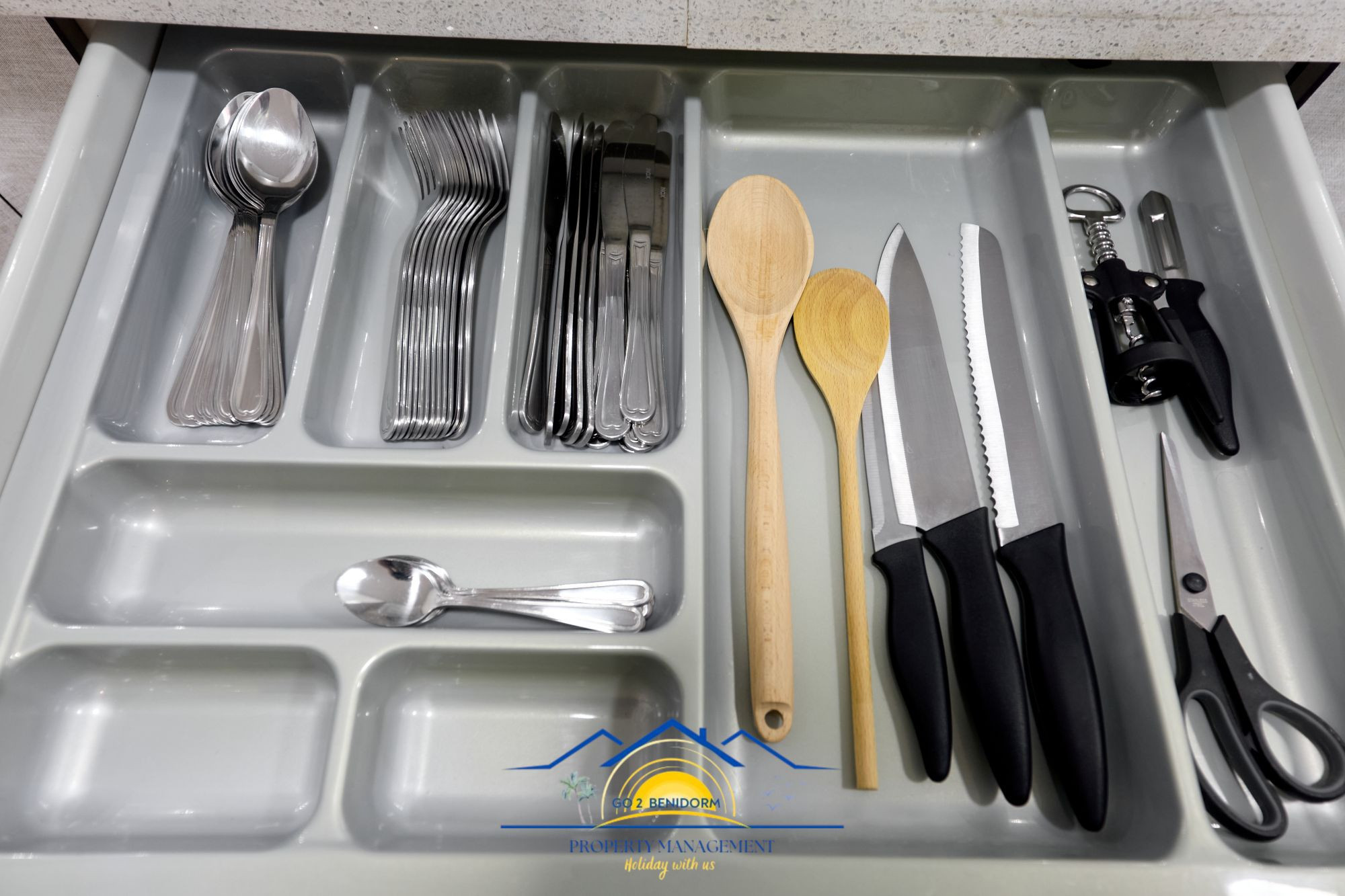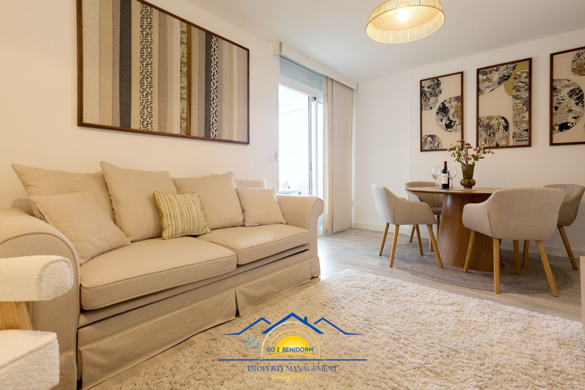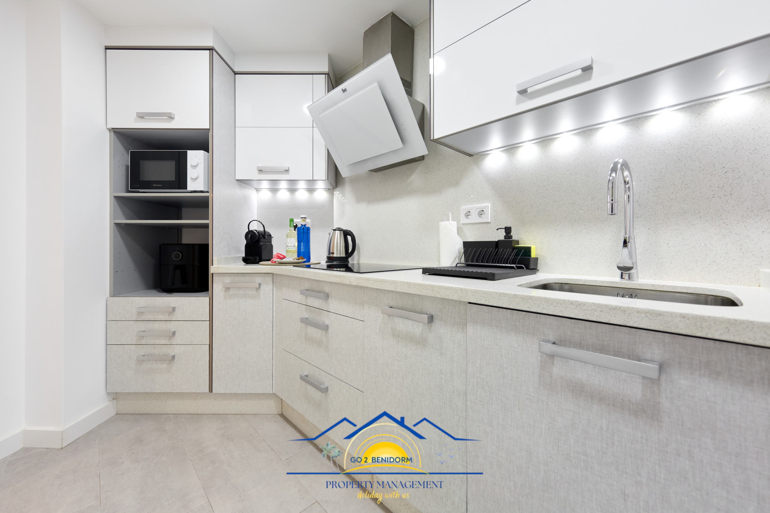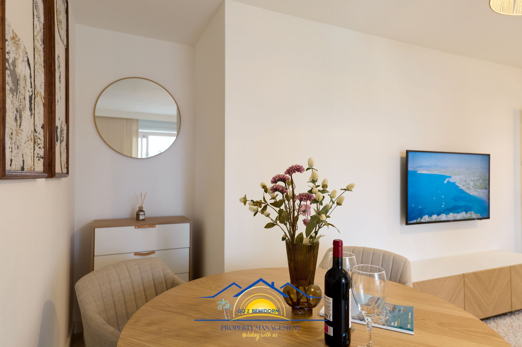 L'appartement à Benidorm dispose de 2 chambres et peut accueillir 6 personnes. L'appartement fait 50 m². La propriété est située à 110 m du supermarché, à 280 m de la plage de sable. Le logement est équipé des éléments suivants : ascenseur, machine à laver, internet (Wi-Fi), sèche-cheveux, court de tennis, climatisation, piscine commune, parking extérieur dans le même bâtiment, télévision. Dans la cuisine ouverte, un réfrigérateur, un micro-ondes et un four sont fournis.