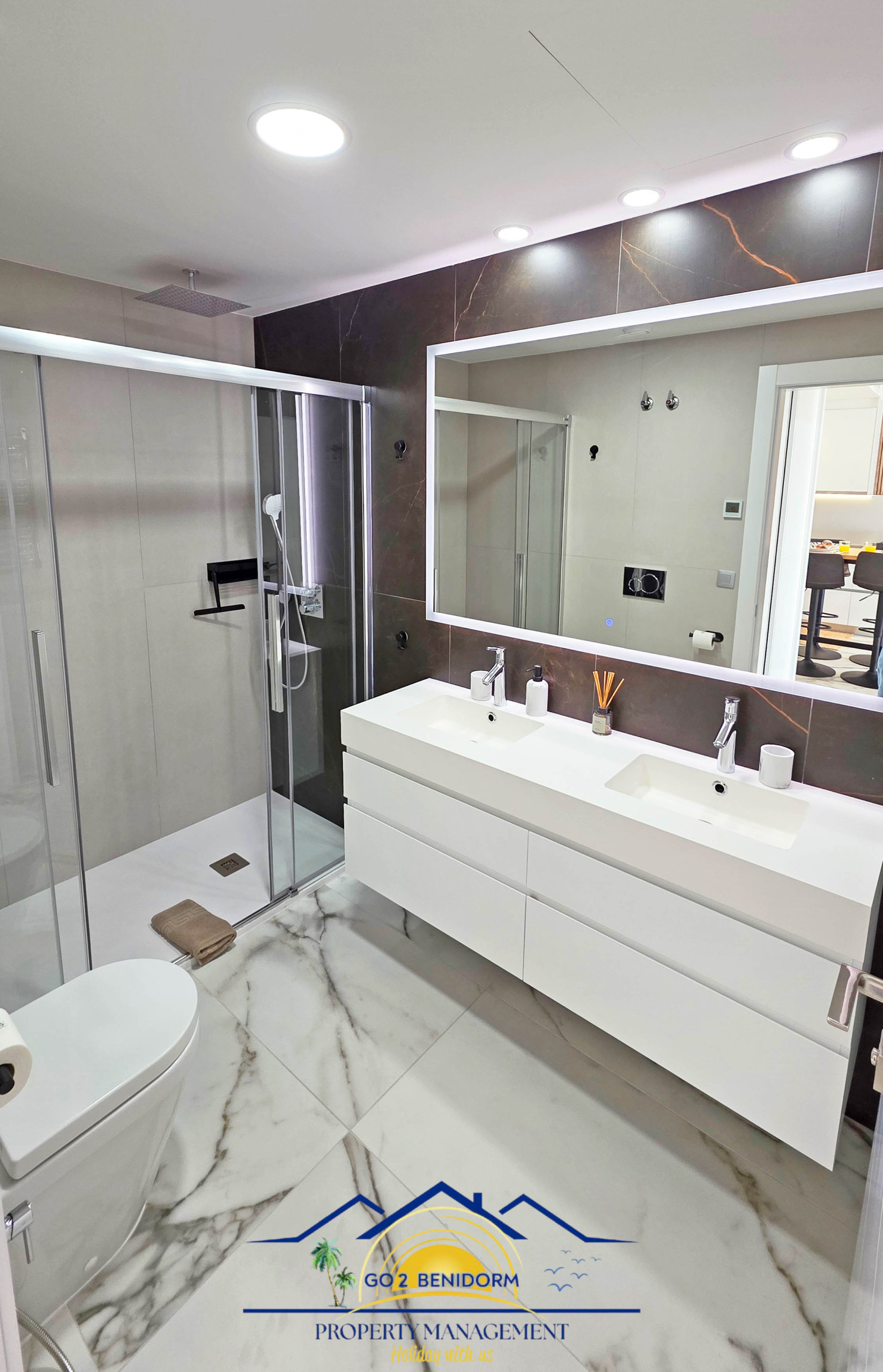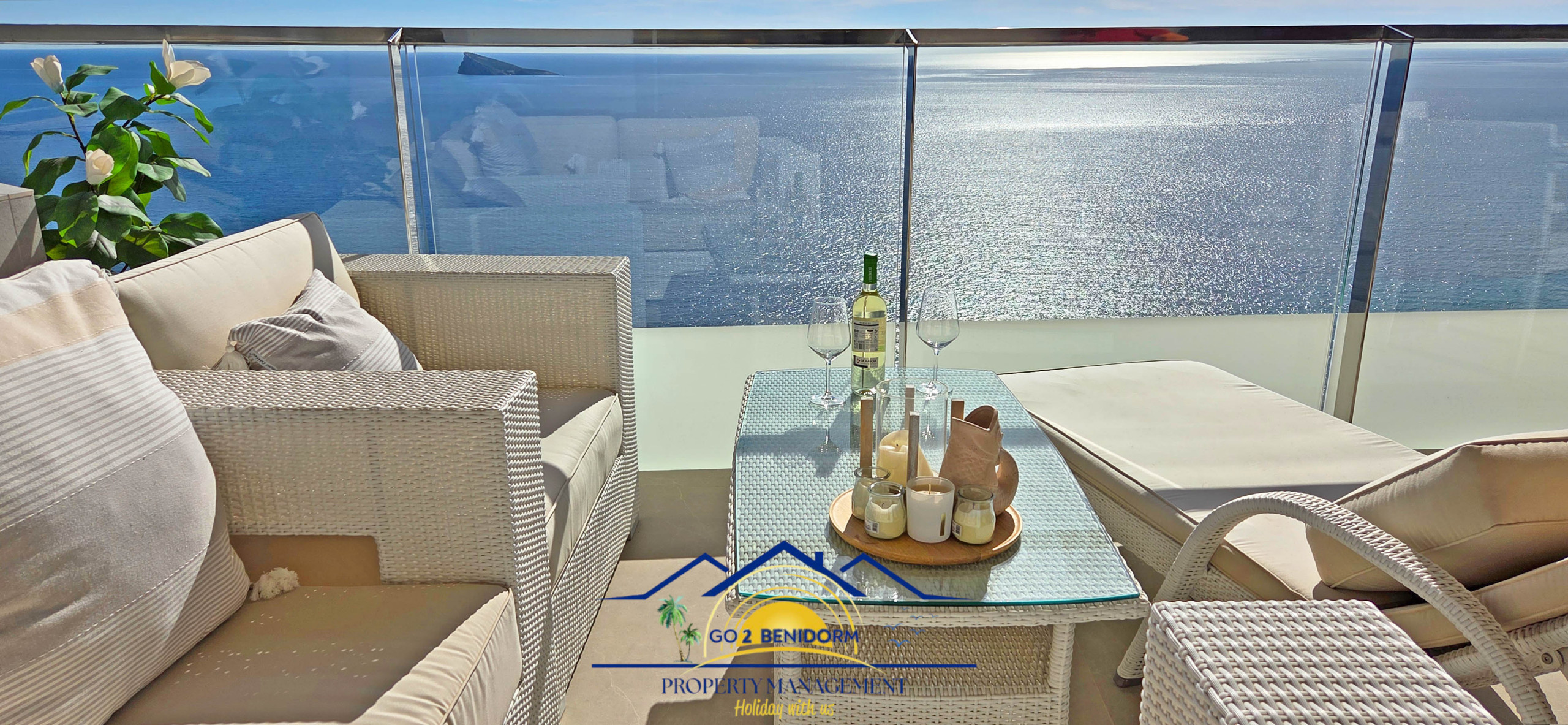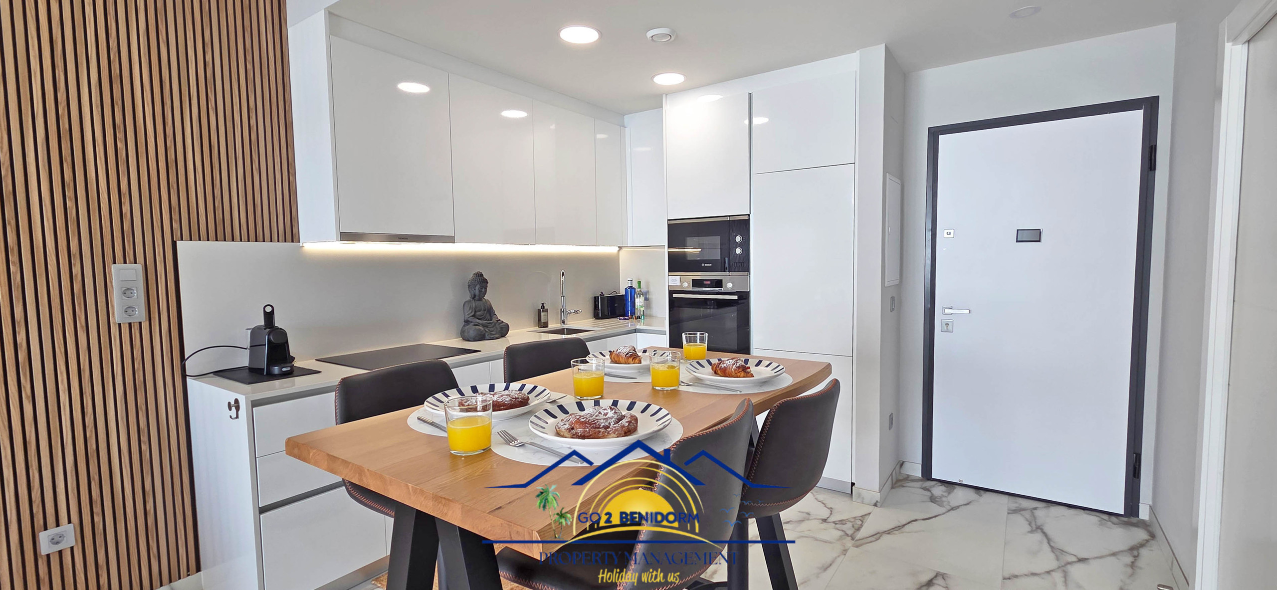 L'un des éléments les plus spéciaux de l'appartement est l'espace repas panoramique, offrant une vue à couper le souffle sur la skyline de Benidorm et la mer à perte de vue. Que ce soit en savourant un café matinal ou un verre de vin au coucher du soleil, la vue vous enchantera toujours.