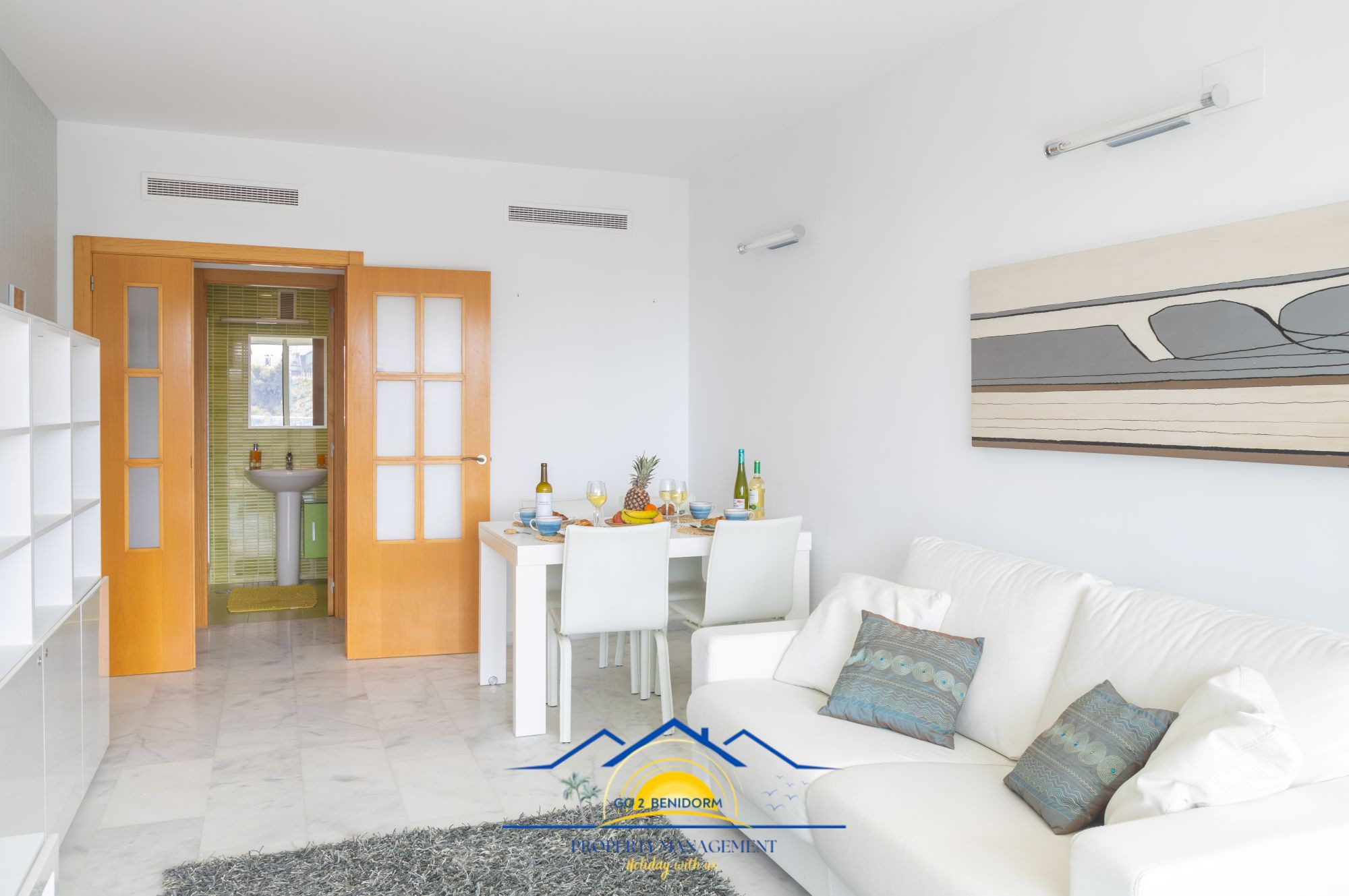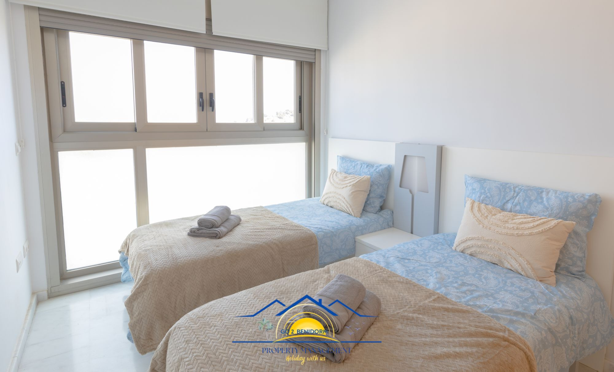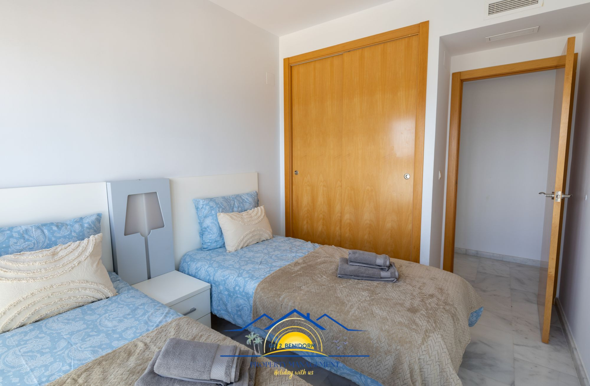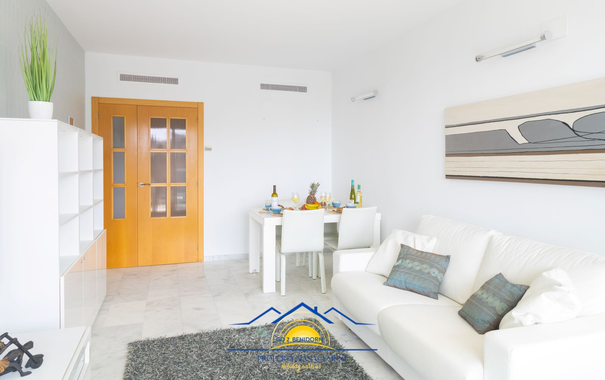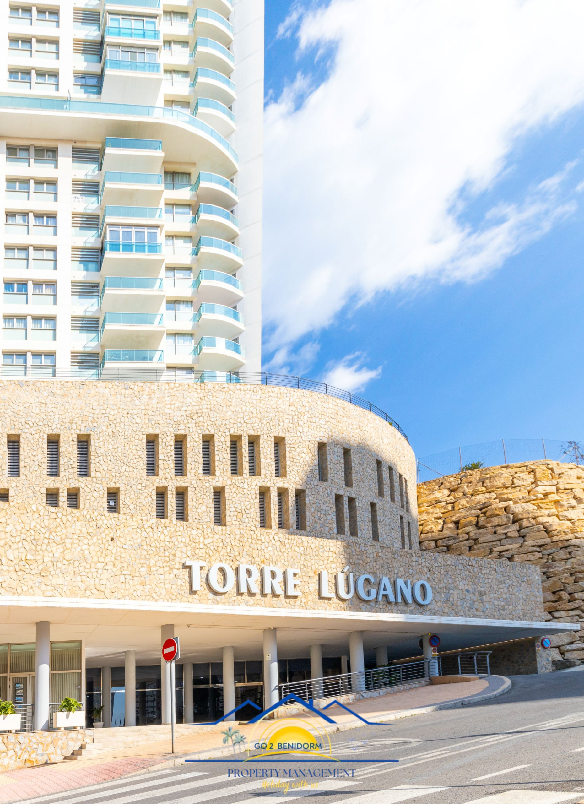 Cet appartement spacieux avec vue sur la mer attend ses invités dans le nouveau gratte-ciel de Benidorm Torre Lugano, où un salon avec une cuisine américaine, 2 chambres, 2 salles de bains offrent un confort et un luxe maximum aux vacanciers ici.