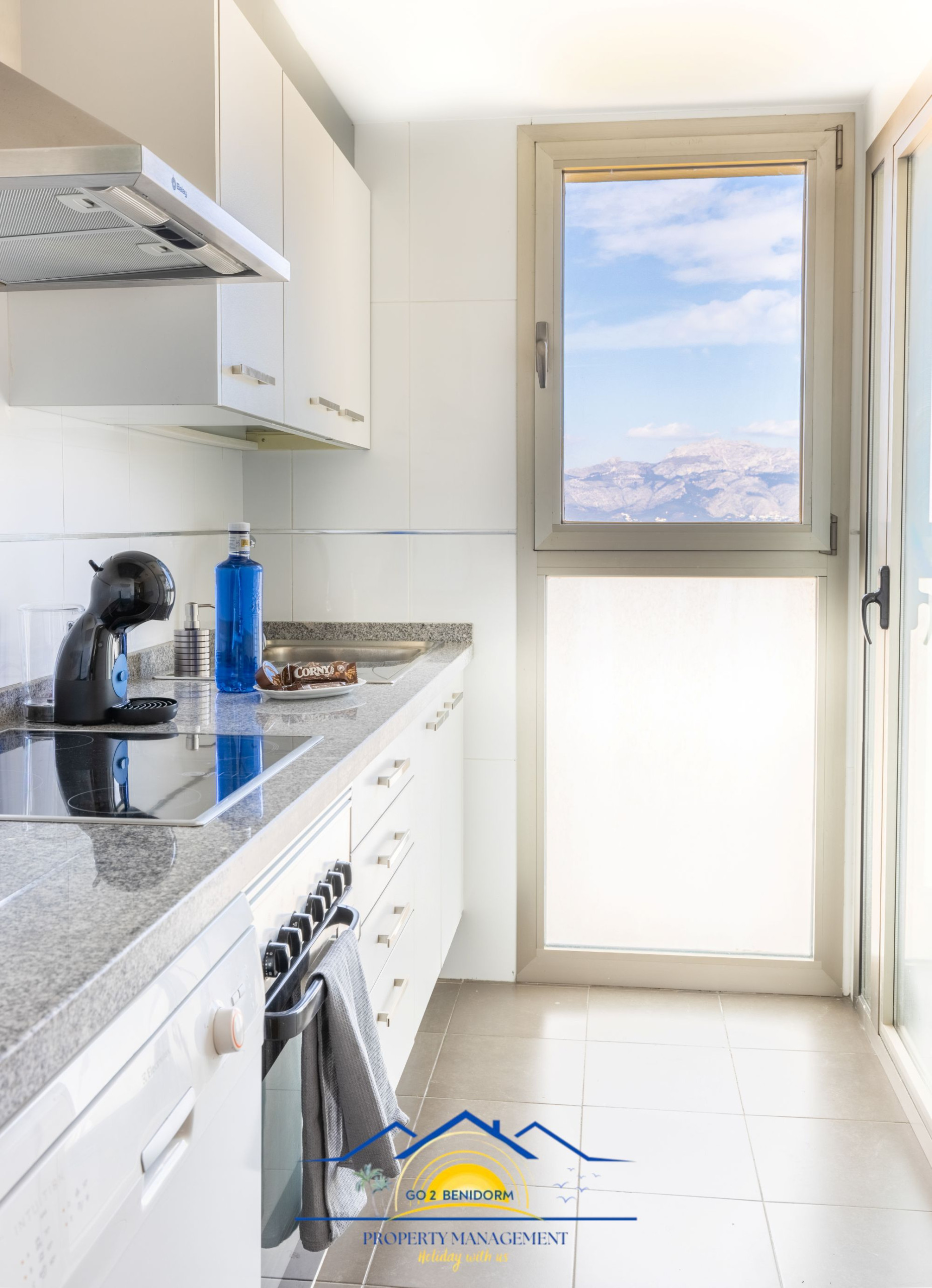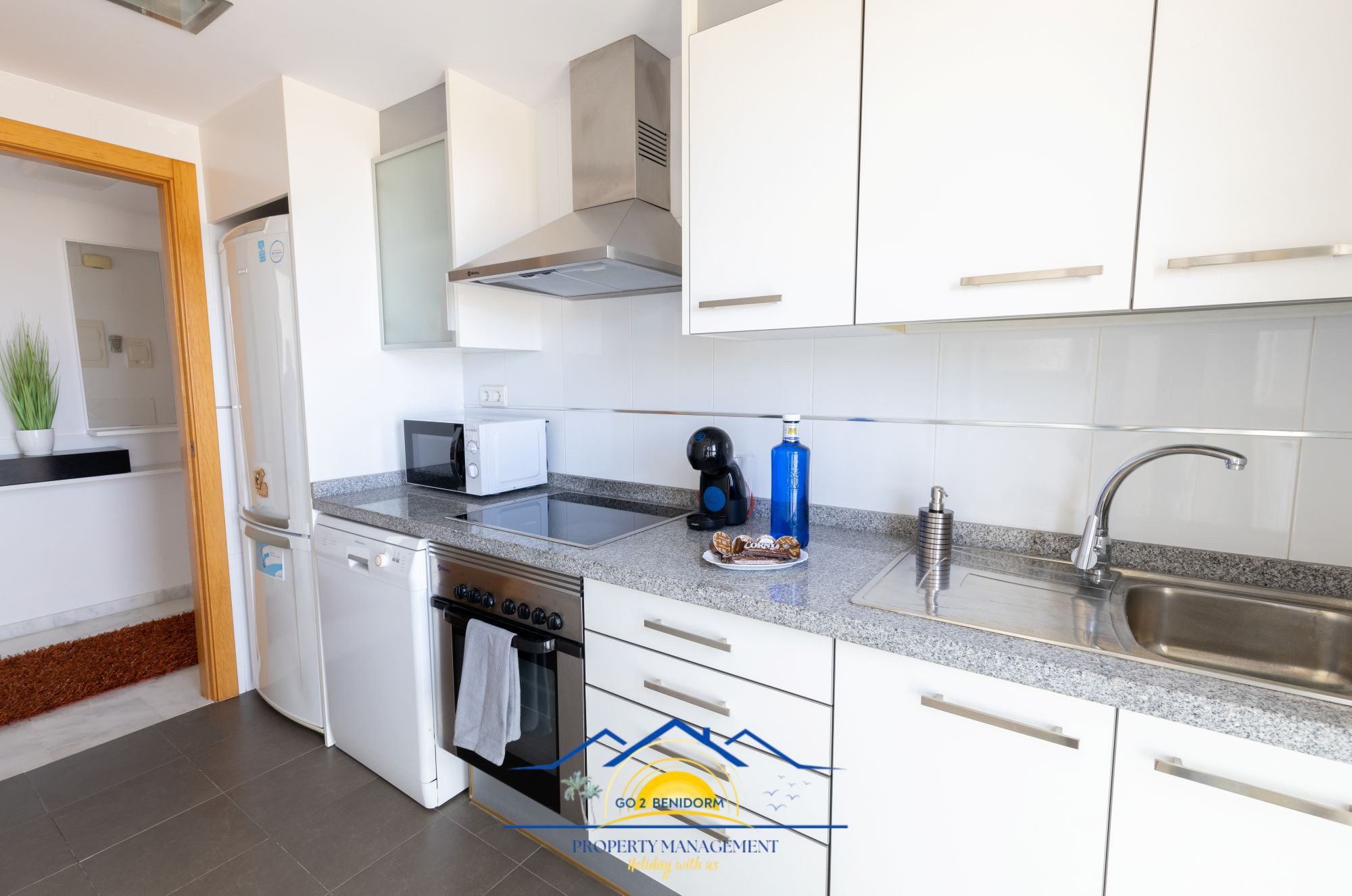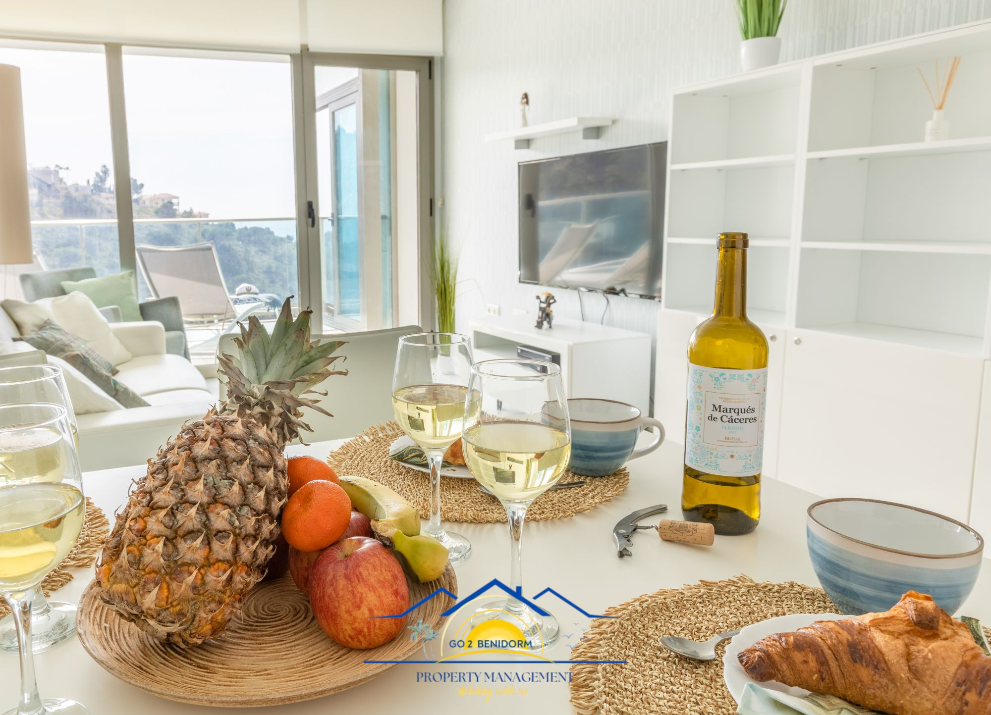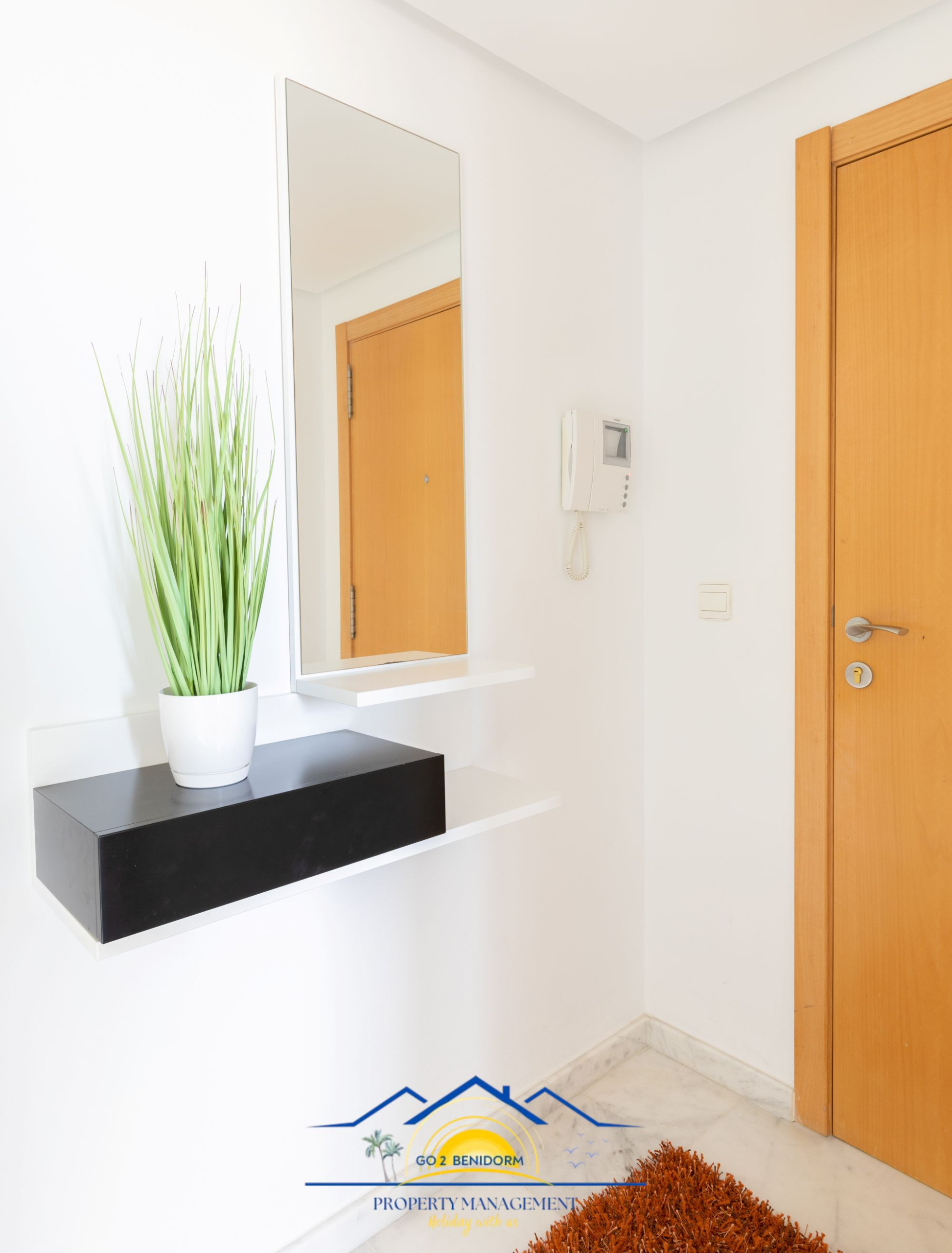 Cet appartement spacieux avec vue sur la mer attend ses invités dans le nouveau gratte-ciel de Benidorm Torre Lugano, où un salon avec une cuisine américaine, 2 chambres, 2 salles de bains offrent un confort et un luxe maximum aux vacanciers ici.
