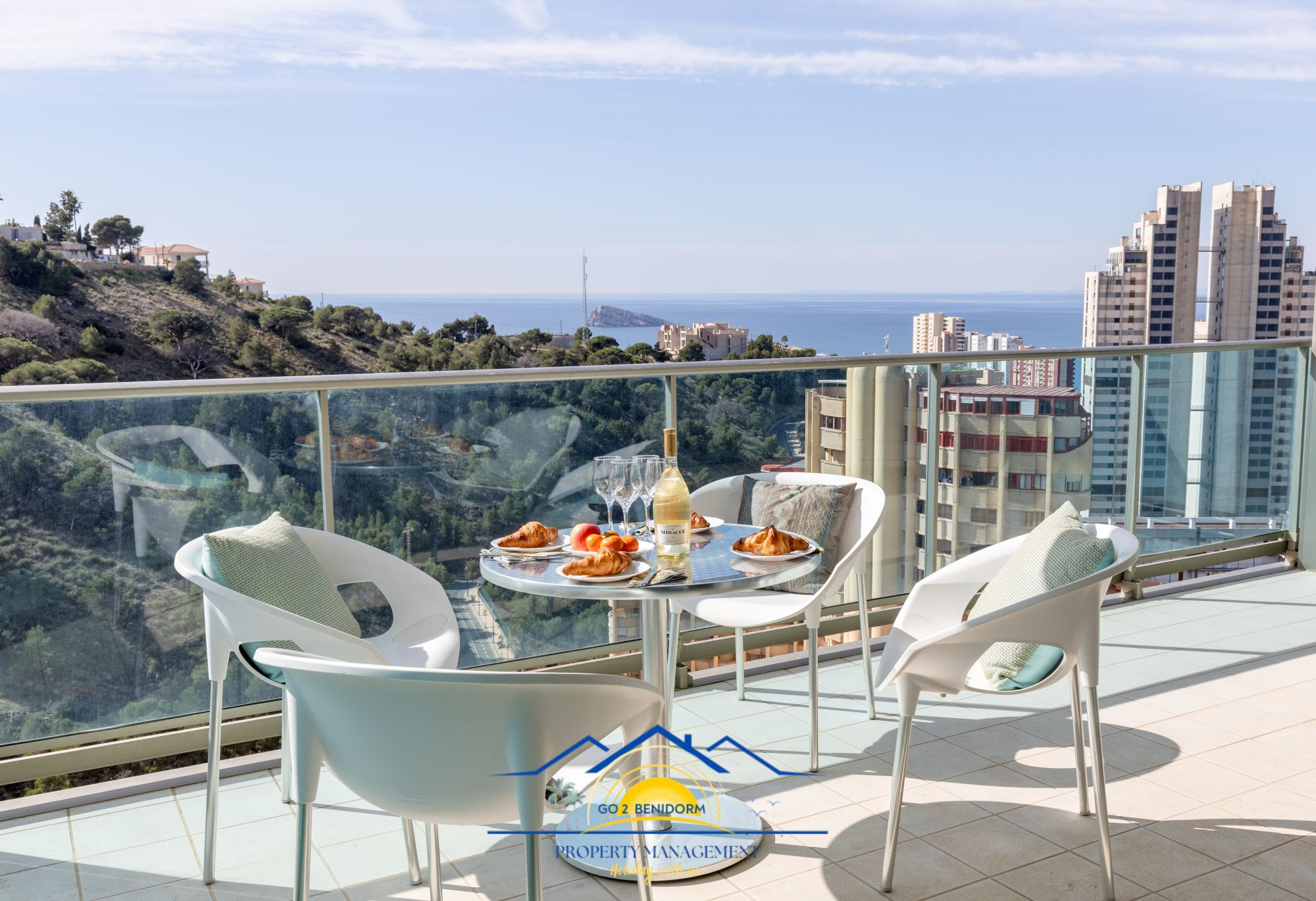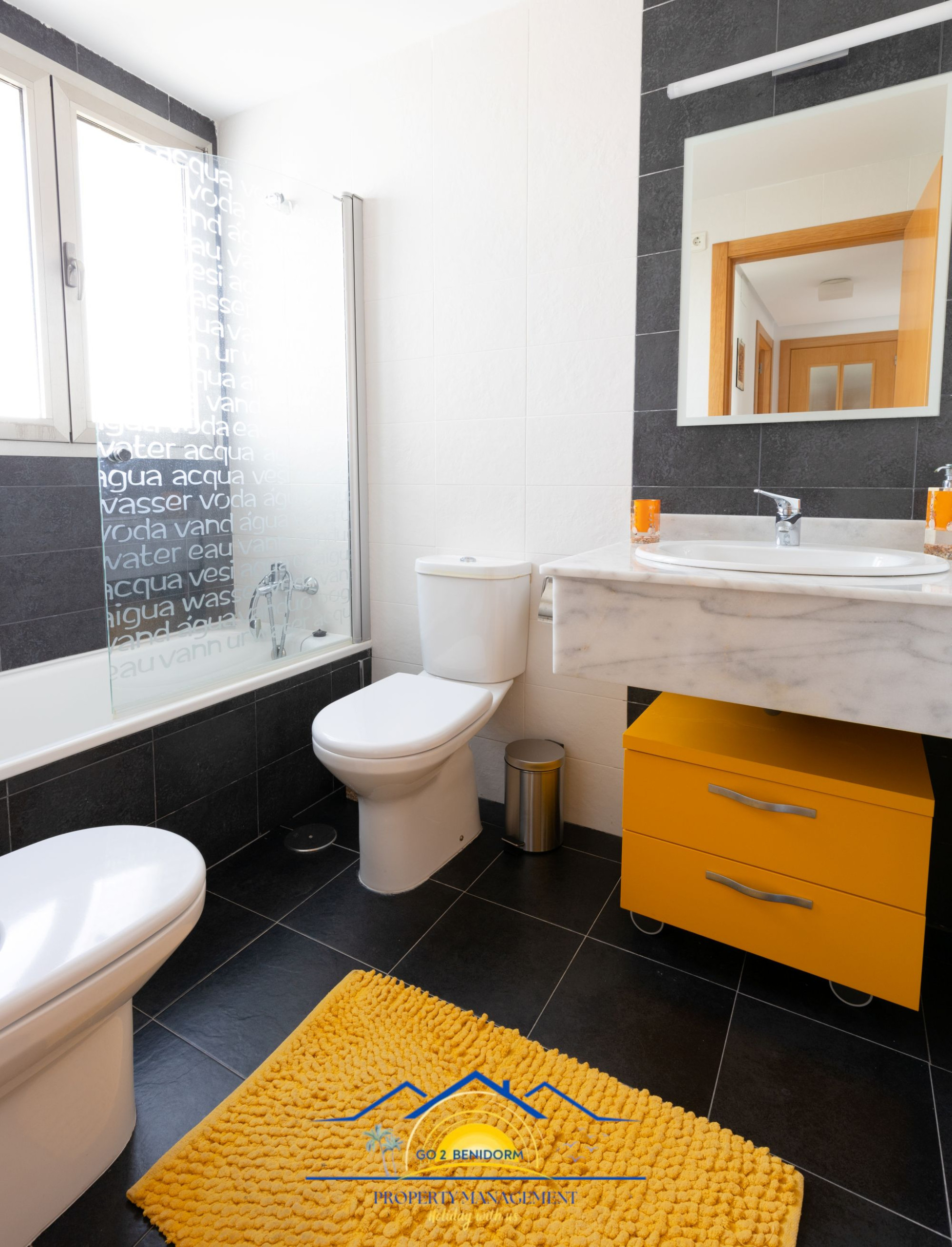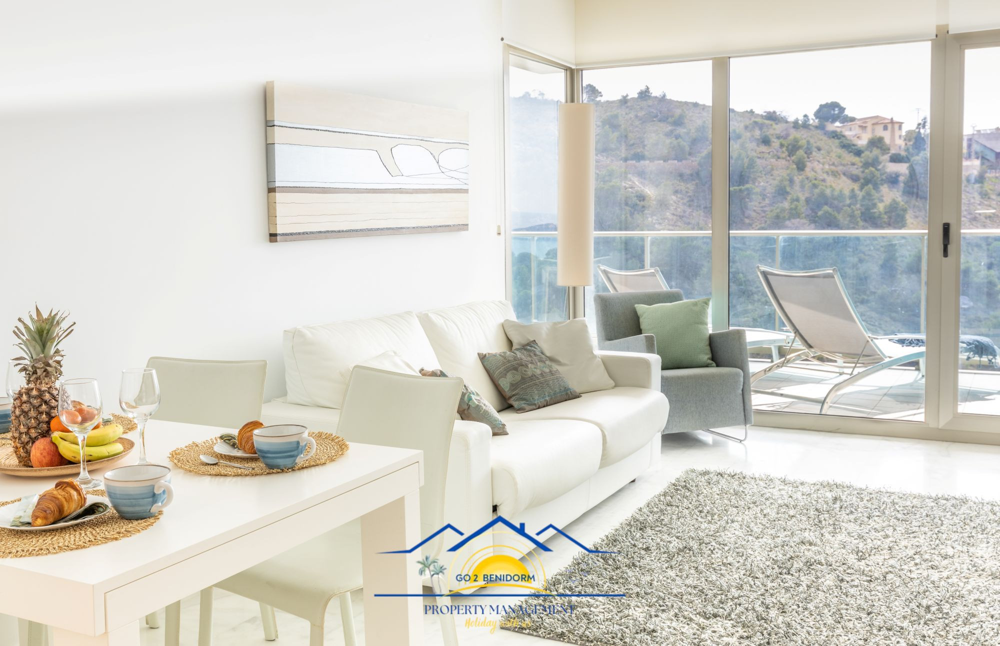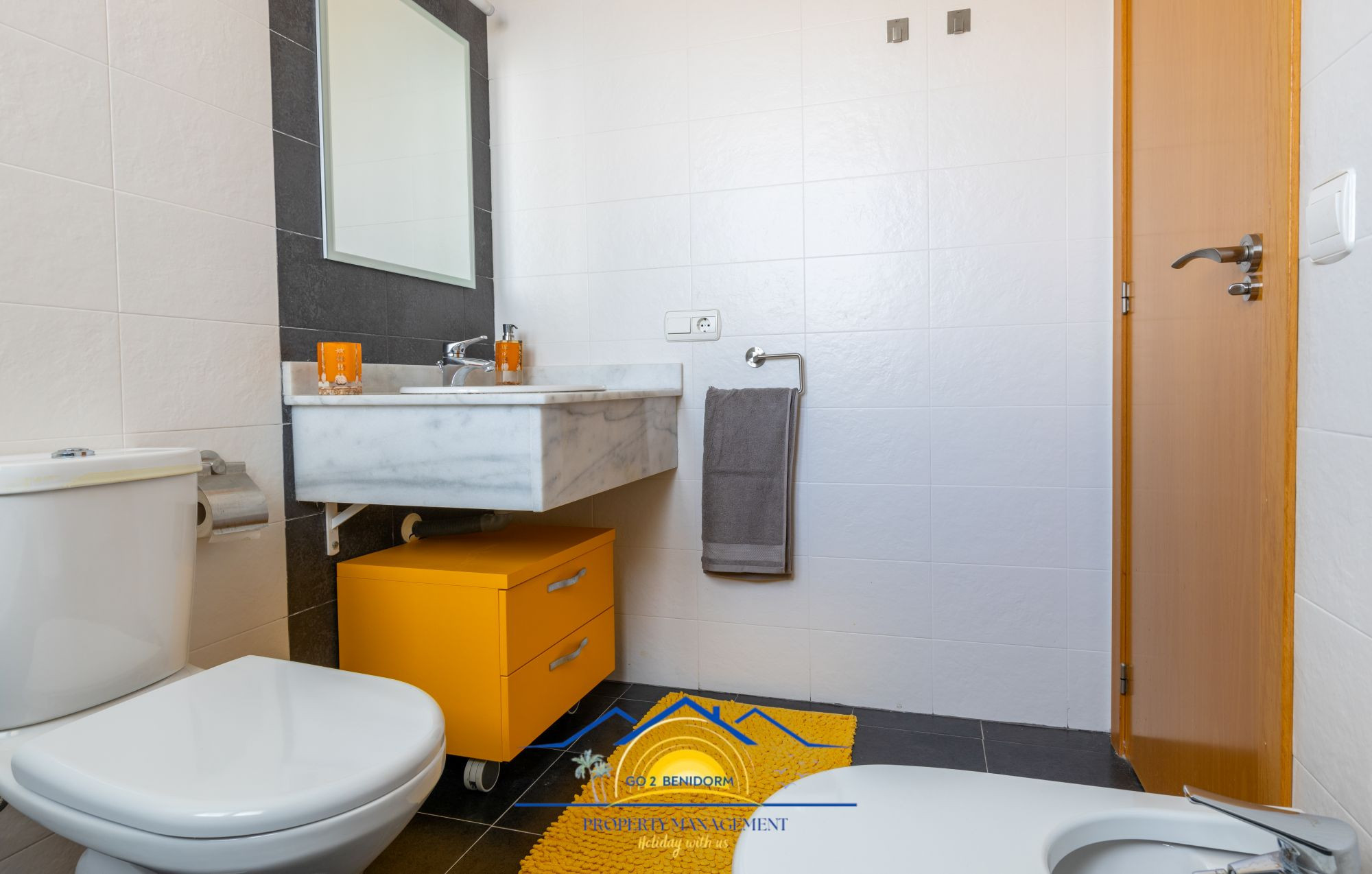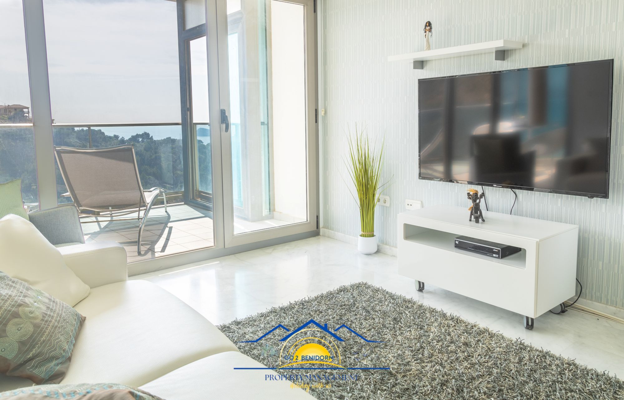Cet appartement spacieux avec vue sur la mer attend ses invités dans le nouveau gratte-ciel de Benidorm Torre Lugano, où un salon avec une cuisine américaine, 2 chambres, 2 salles de bains offrent un confort et un luxe maximum aux vacanciers ici.