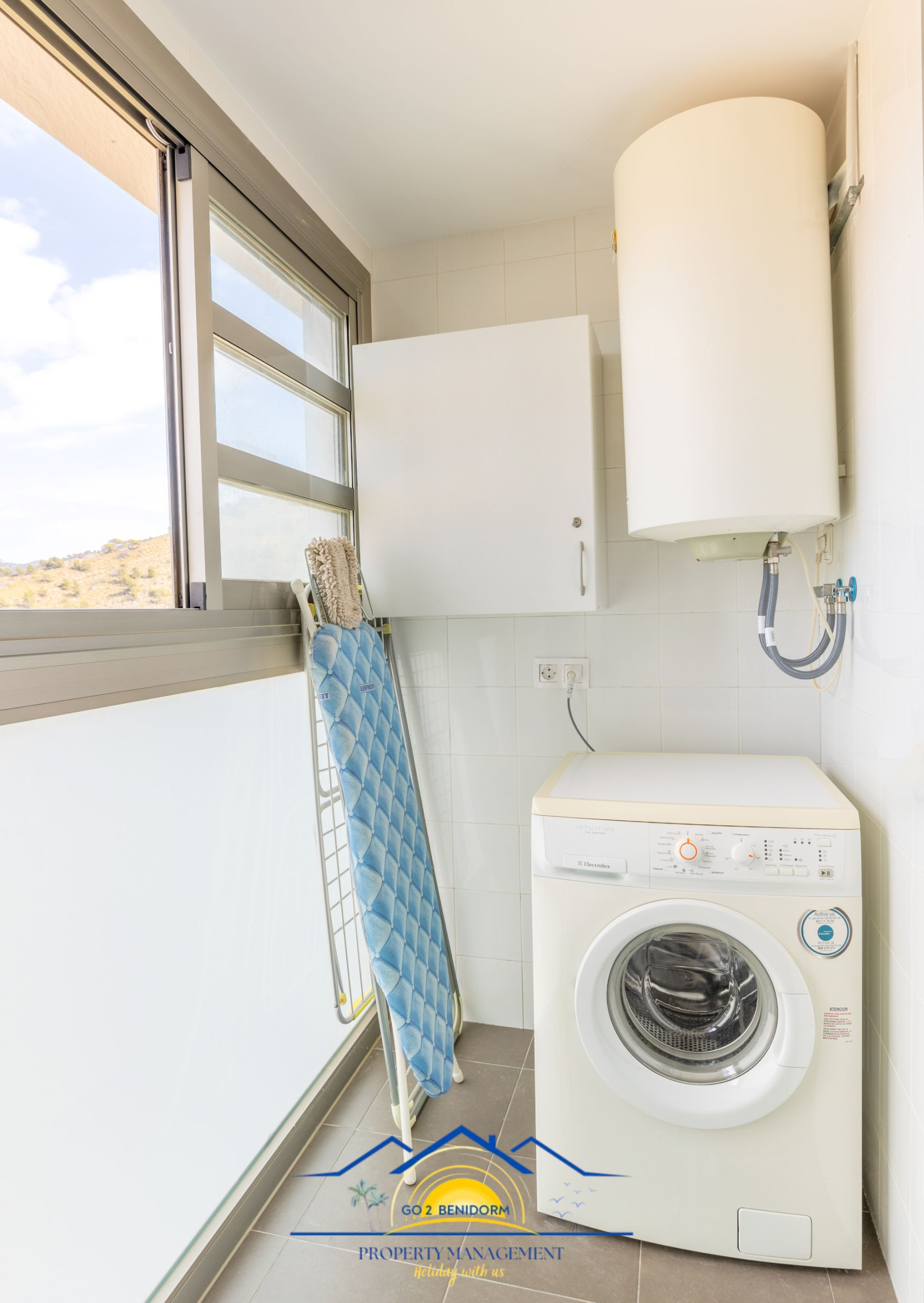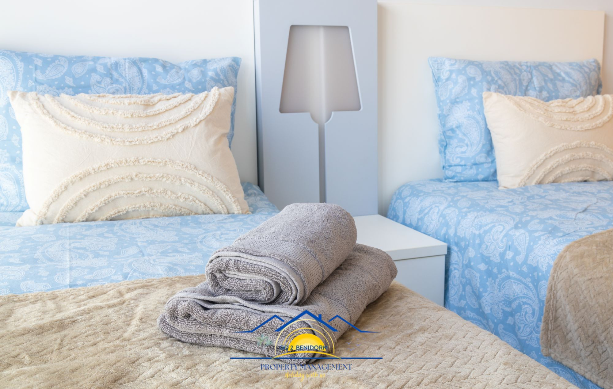L'appartement à Benidorm dispose de 2 chambres et peut accueillir 6 personnes. L'appartement fait 50 m². La propriété est située à 110 m du supermarché, à 280 m de la plage de sable. Le logement est équipé des éléments suivants : ascenseur, machine à laver, internet (Wi-Fi), sèche-cheveux, court de tennis, climatisation, piscine commune, parking extérieur dans le même bâtiment, télévision. Dans la cuisine ouverte, un réfrigérateur, un micro-ondes et un four sont fournis.