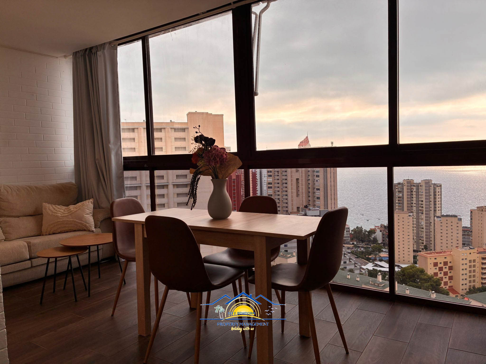 One of the apartment’s most special features is the panoramic dining area, offering breathtaking views of Benidorm’s skyline and the endless sea. Whether you’re enjoying a morning coffee or a glass of wine at sunset, the view will always enchant you.