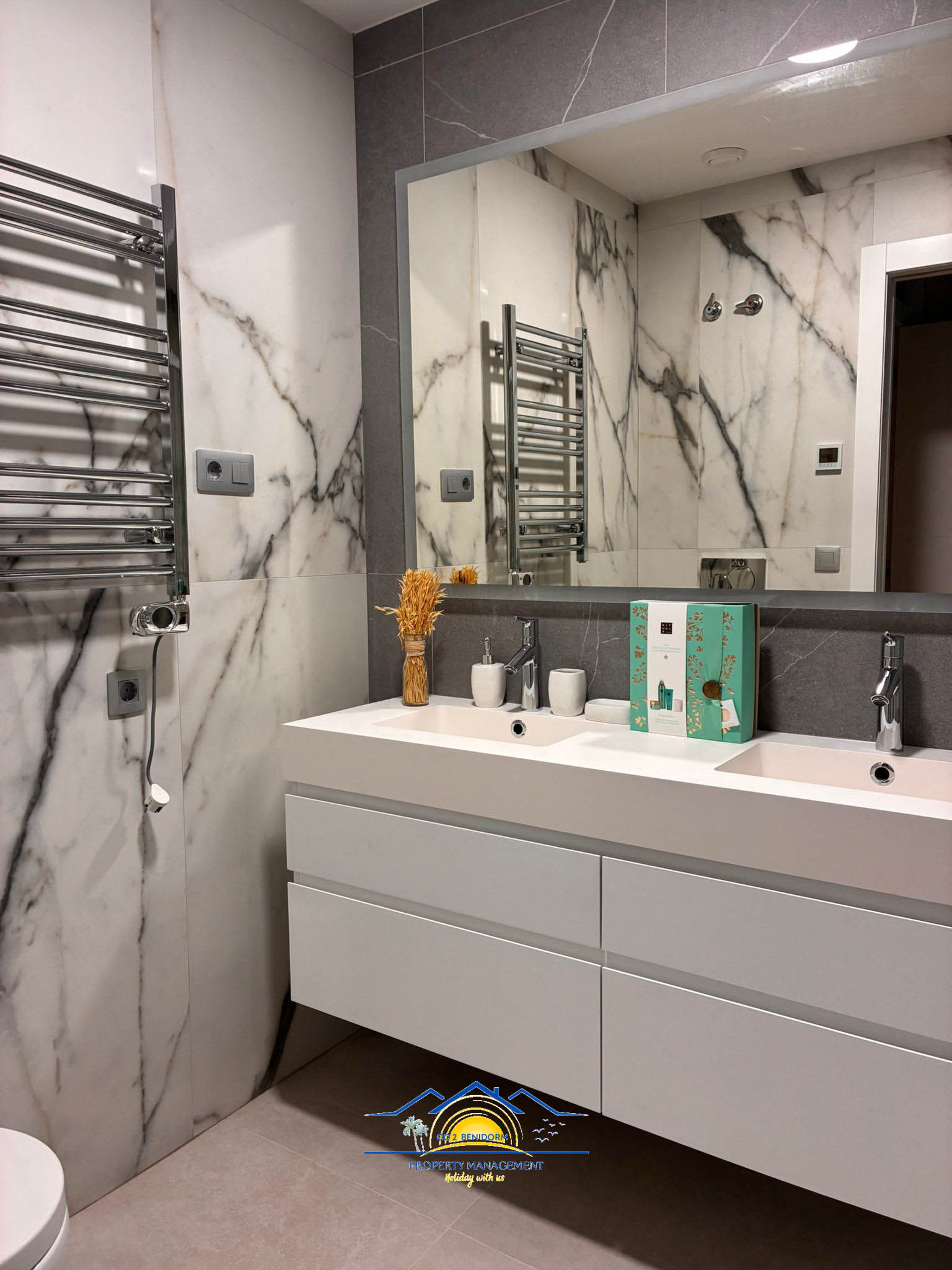 The spacious, bright interiors and clean modern design will captivate you from the very first moment. Through the floor-to-ceiling windows, you can enjoy breathtaking views of the sea and Benidorm’s iconic skyline – as if you were waking up inside a postcard every morning.