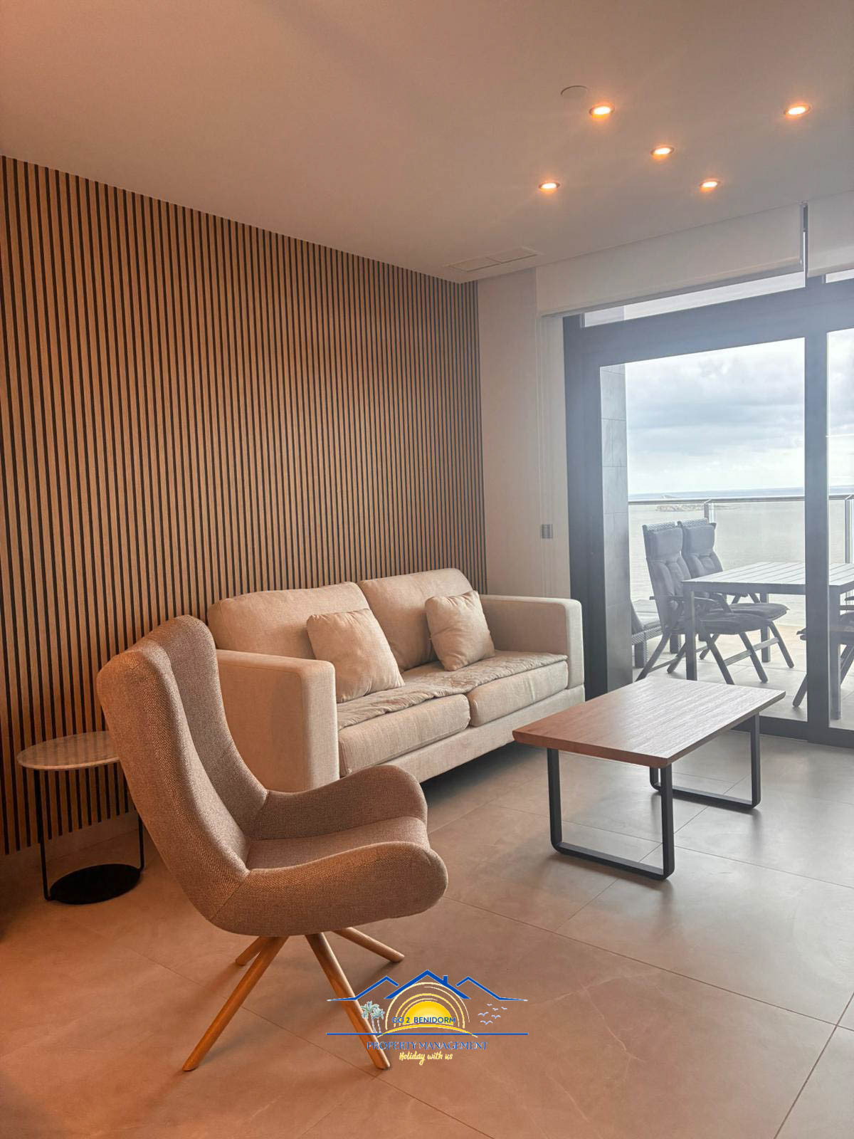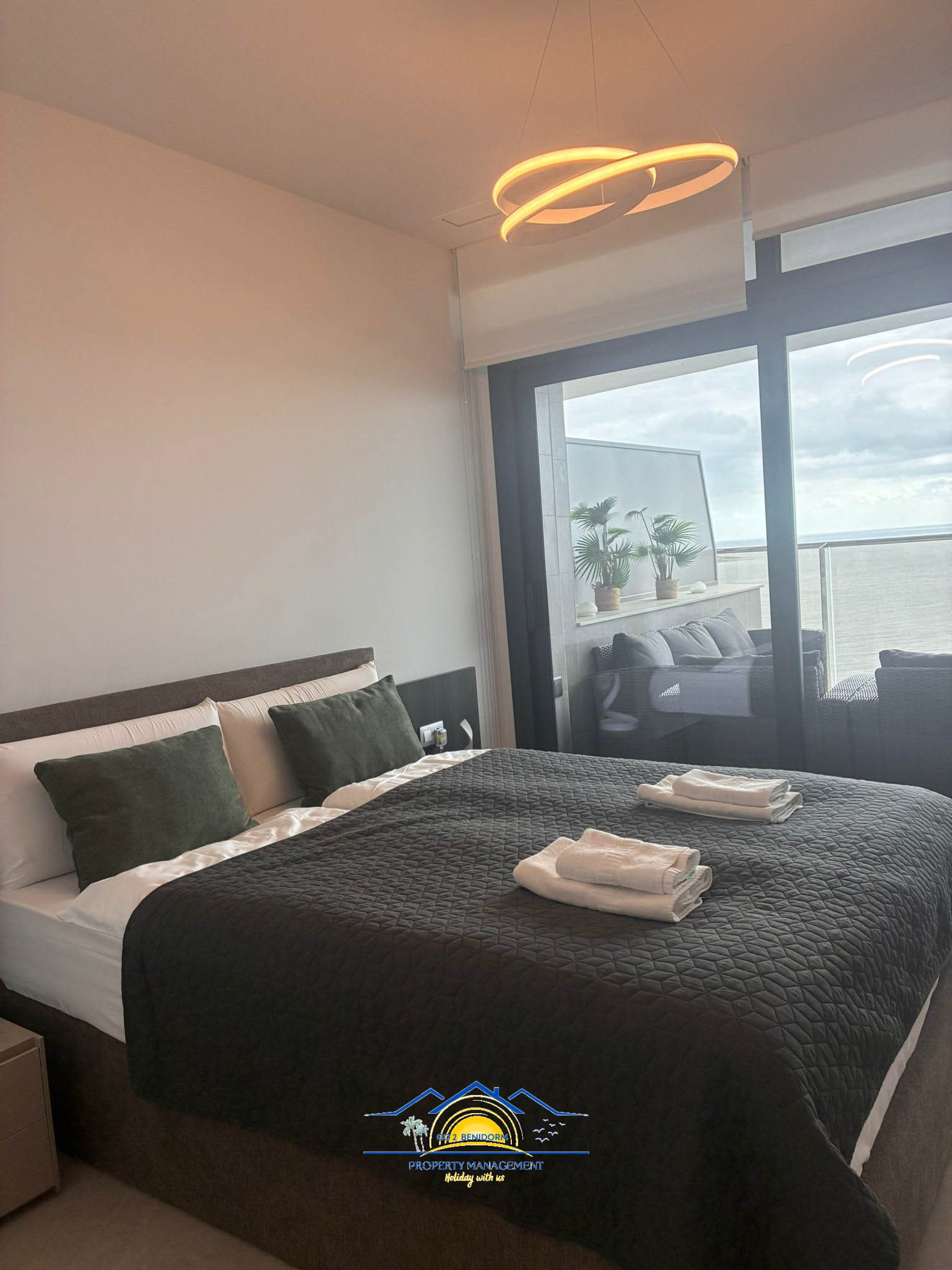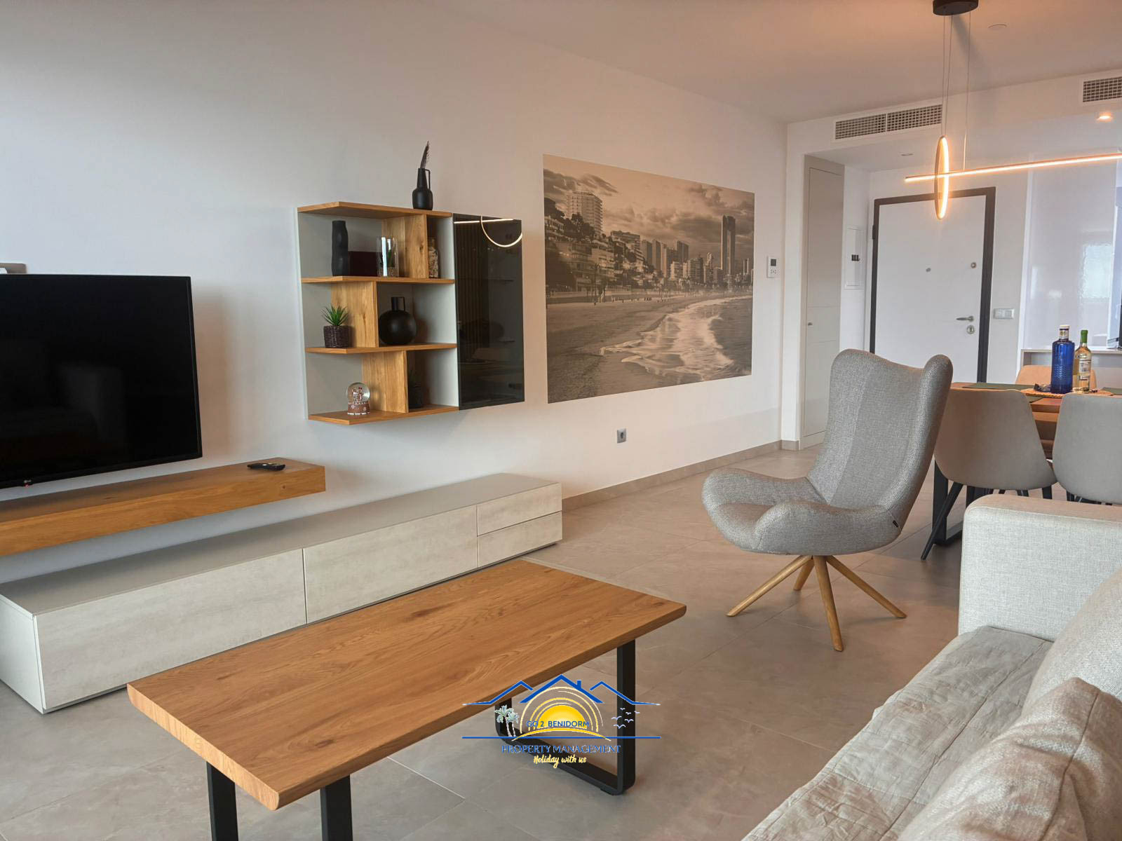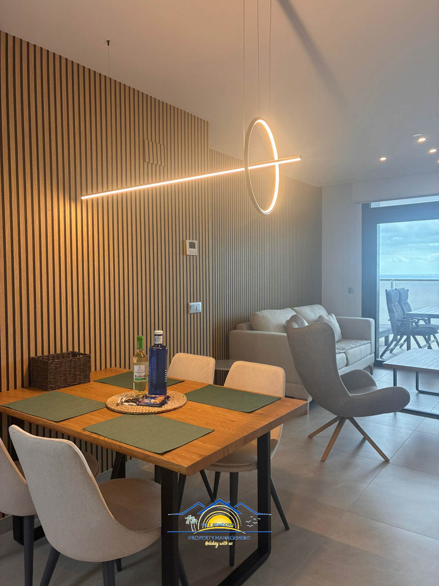 One of the apartment’s most special features is the panoramic dining area, offering breathtaking views of Benidorm’s skyline and the endless sea. Whether you’re enjoying a morning coffee or a glass of wine at sunset, the view will always enchant you.
