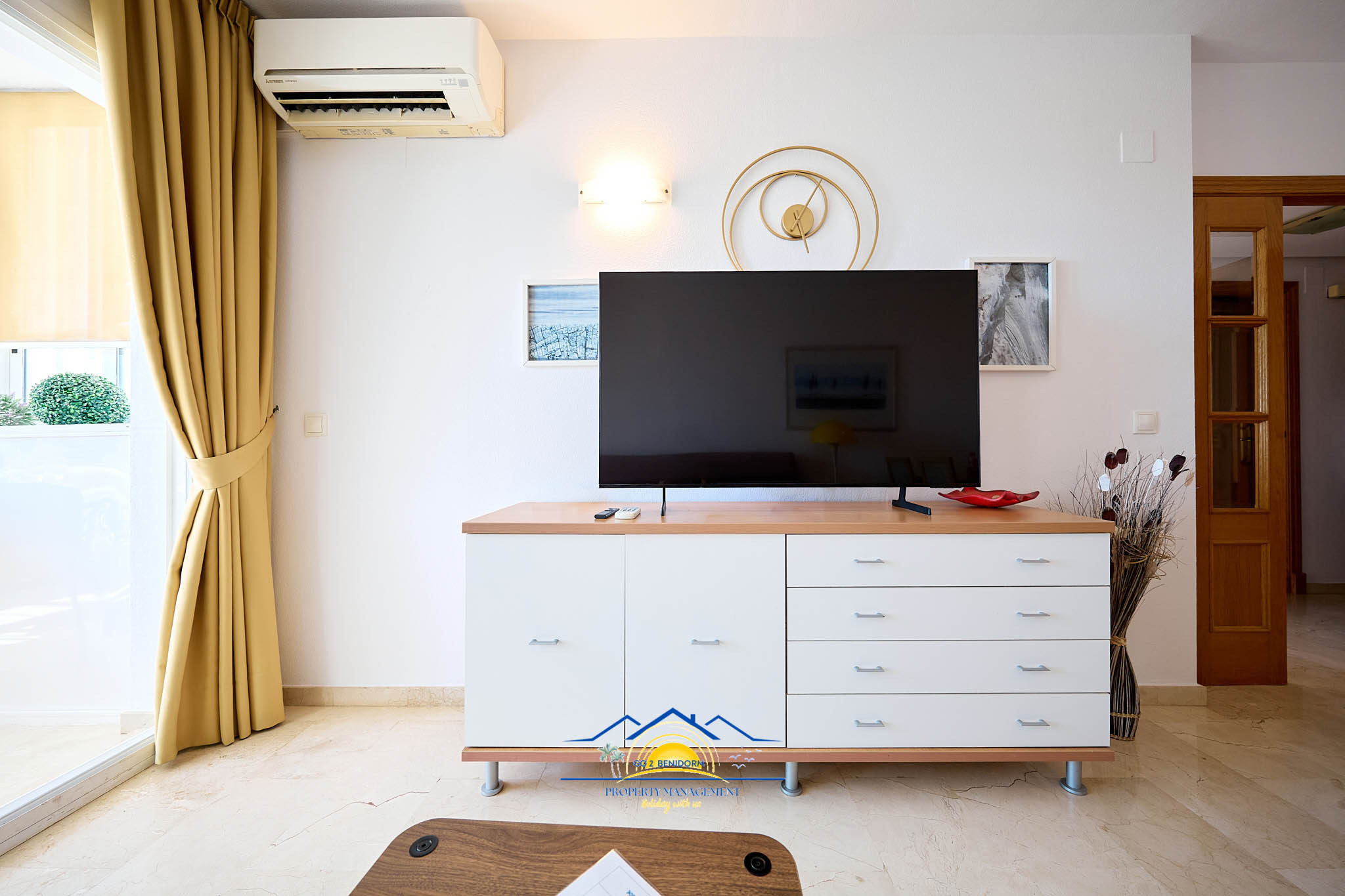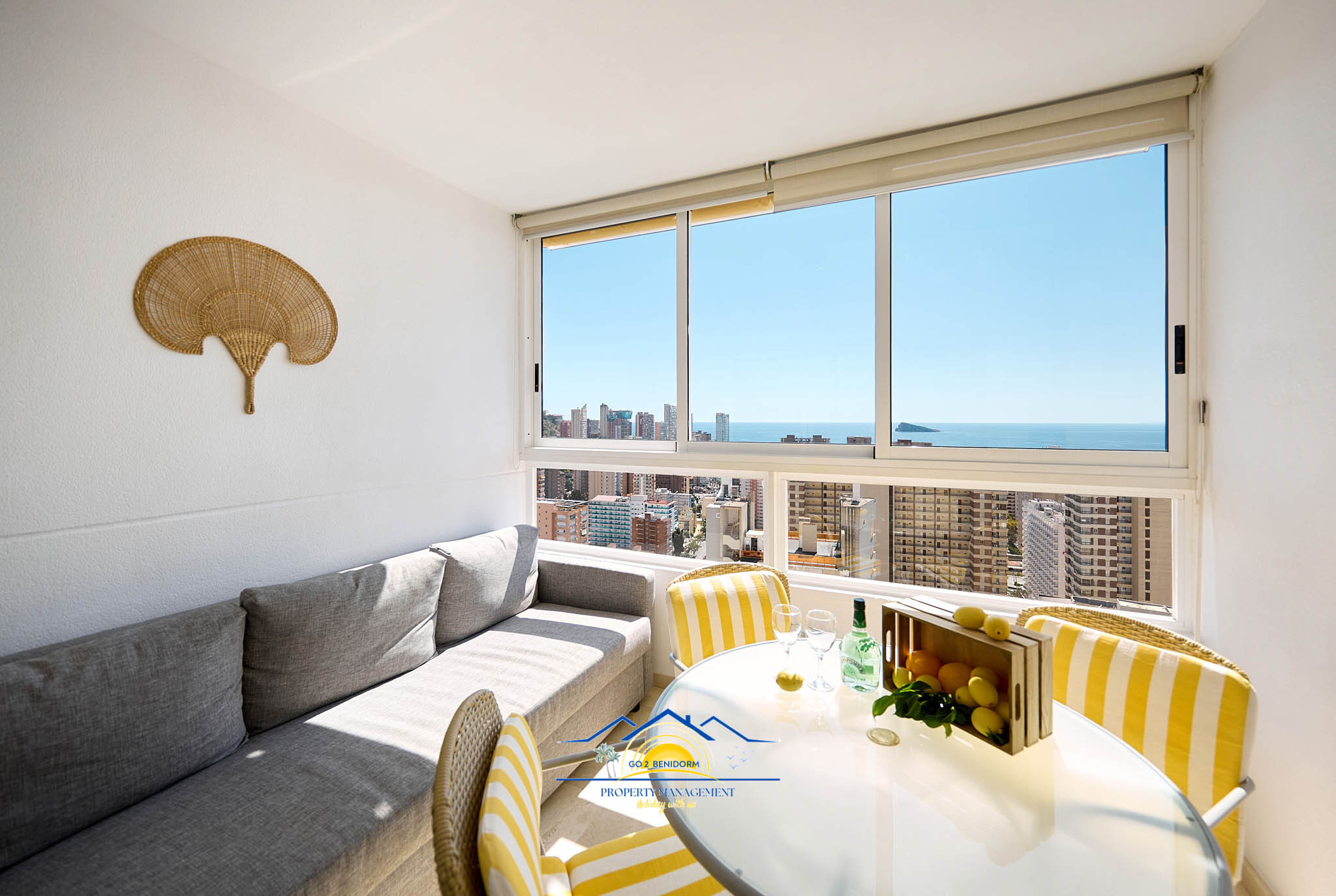 One of the apartment’s most special features is the panoramic dining area, offering breathtaking views of Benidorm’s skyline and the endless sea. Whether you’re enjoying a morning coffee or a glass of wine at sunset, the view will always enchant you.